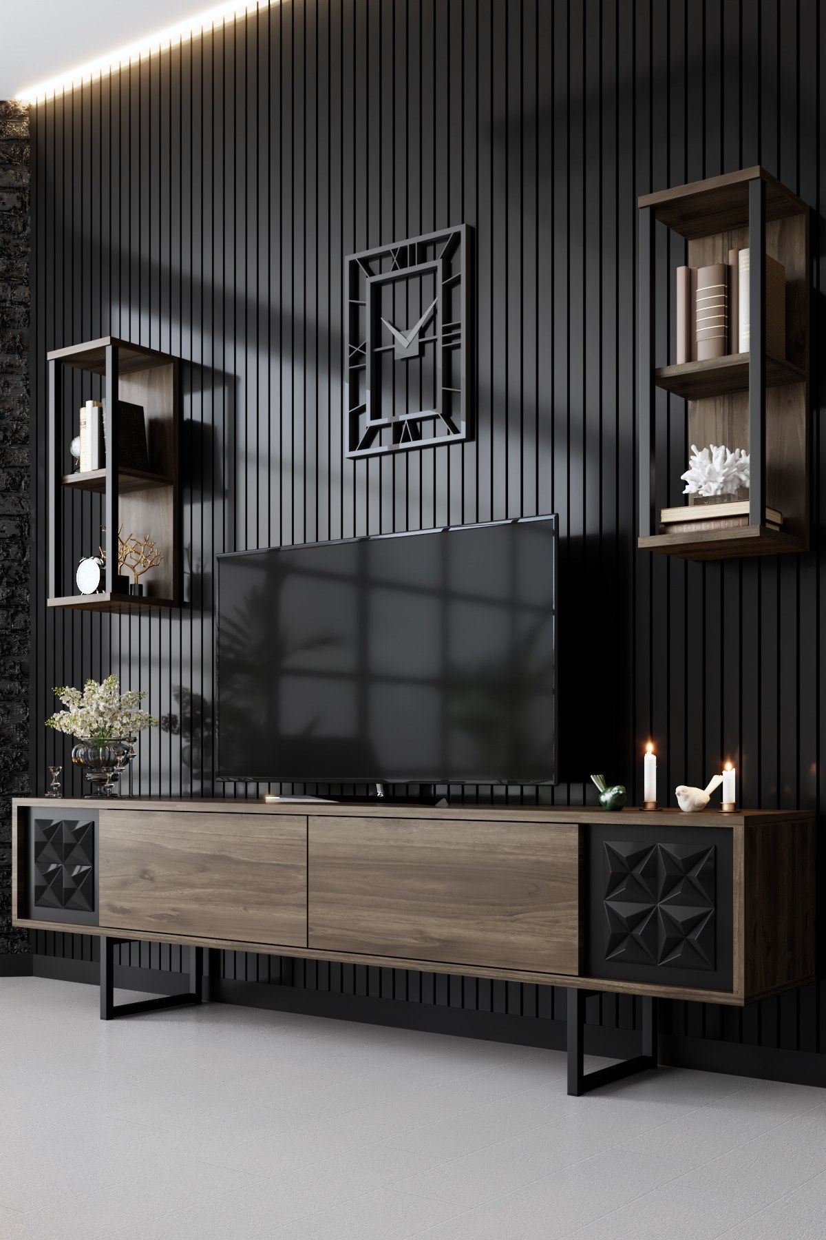 Black Line Set – Walnut, Black – Комплет мебел за дневна соба