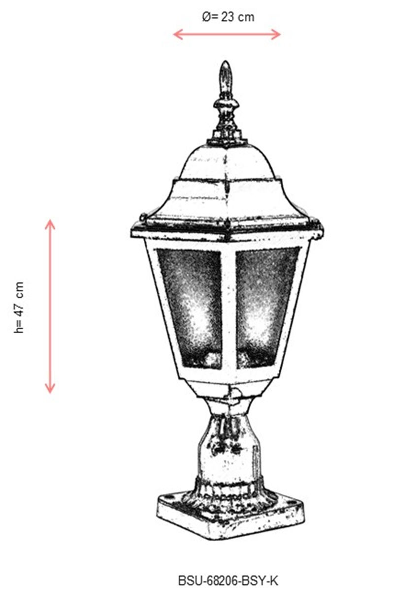 Типот на штекерот E27 овозможува лесно инсталирање на сијалица од 40 W, обезбедувајќи доволно светлина за вашиот надворешен простор. Должината од 47 cm и дијаметарот од 23 cm ја прават оваа светилка совршена големина за секој надворешен ѕид.