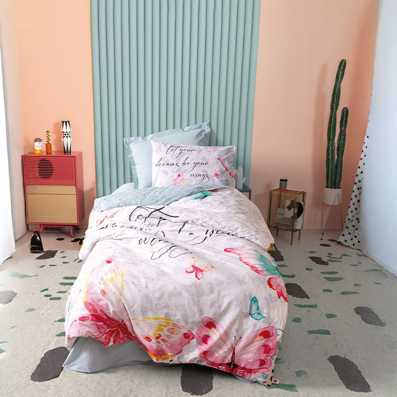 Додадете боја, топлина и удобност во детската соба со детскиот сет постелнина Wings – Mint, изработен од 100% Ranforce природен памук. Овој сет е совршен избор за нежната детска кожа – мек, дишлив и целосно хипоалергиски. Со својот весел и нежен розов дизајн, ќе создаде пријатна и весела атмосфера што ги поттикнува убавите соништа.
