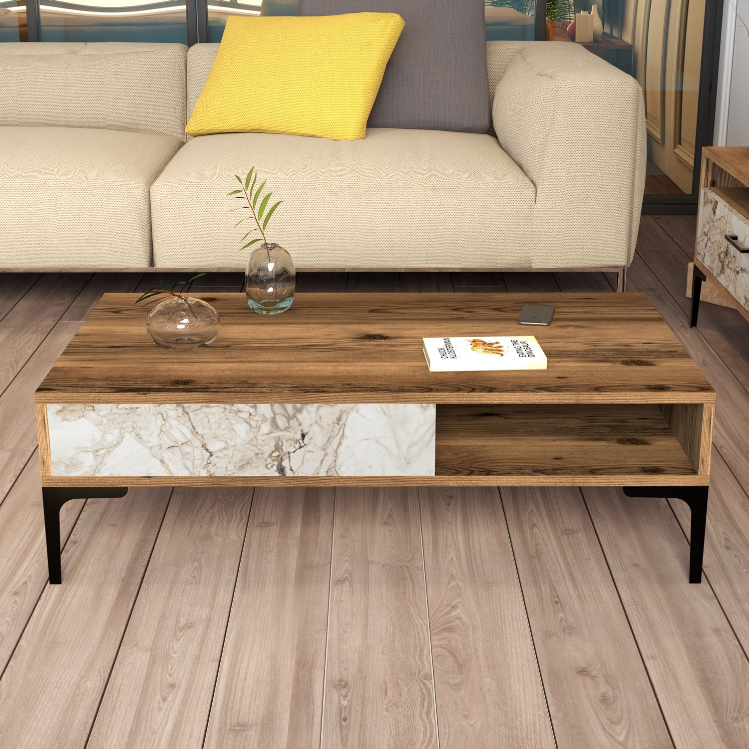 Istanbul – Walnut, White Marble – Маса за кафе