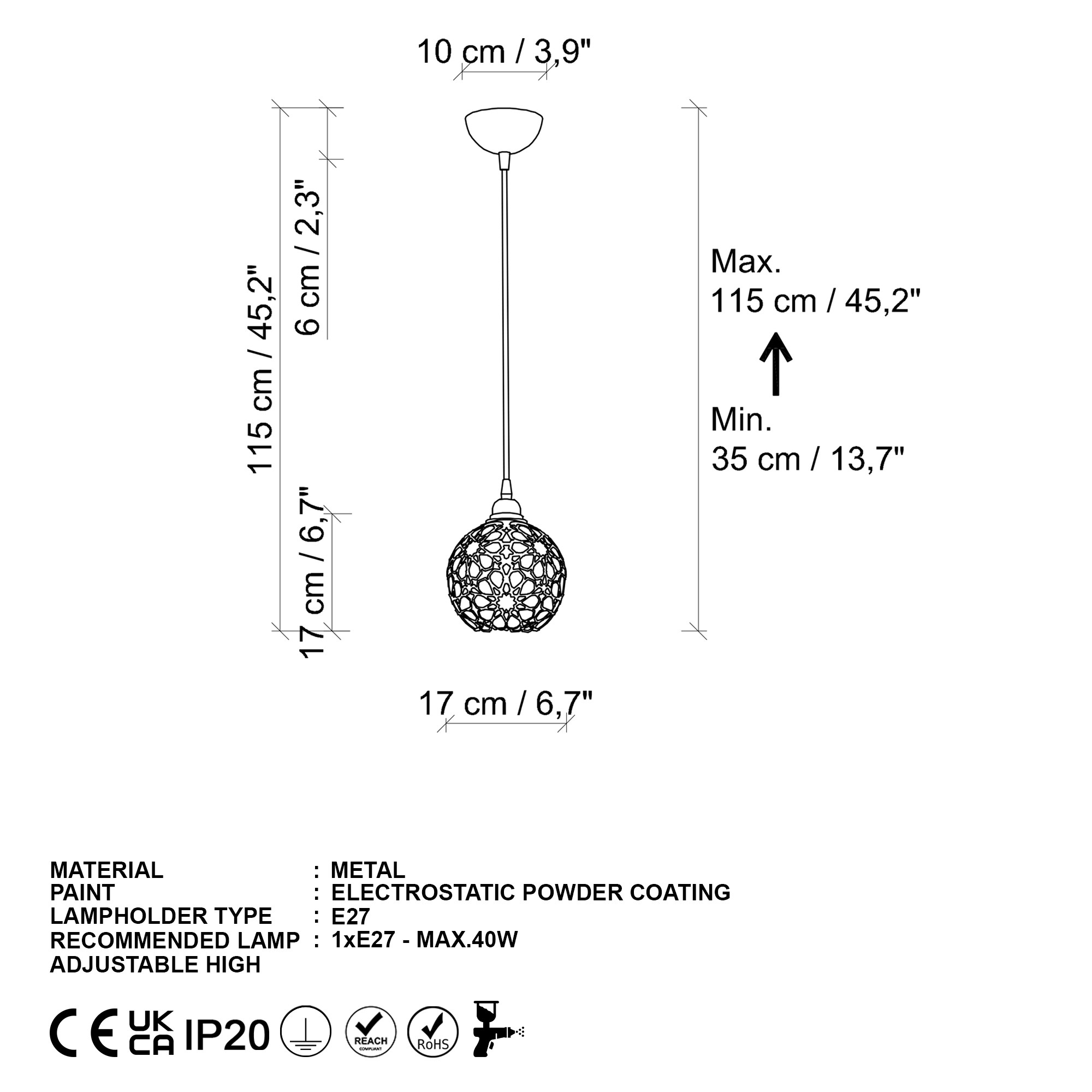 Вкупна висина: 35 – 115 см