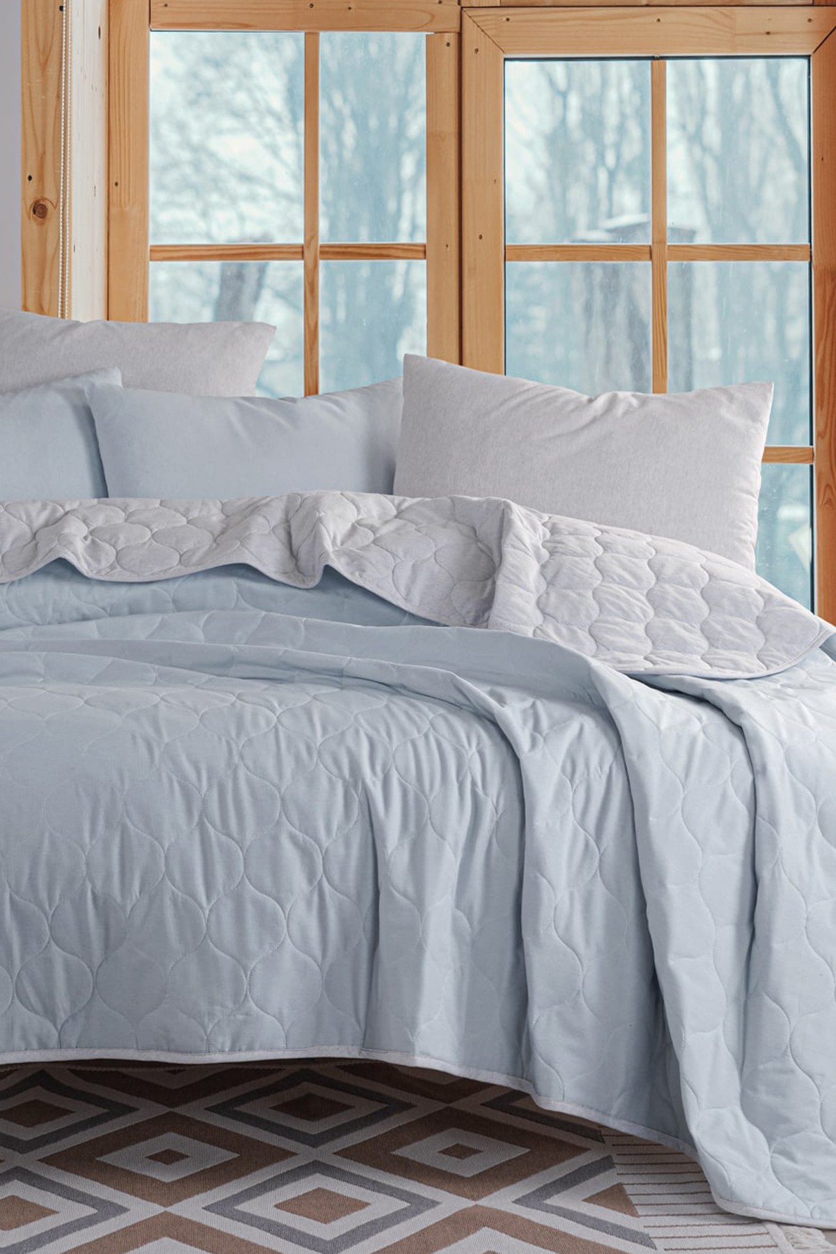Solid – Light Blue, Grey – Сет Дупли прекривач и навлака за перница