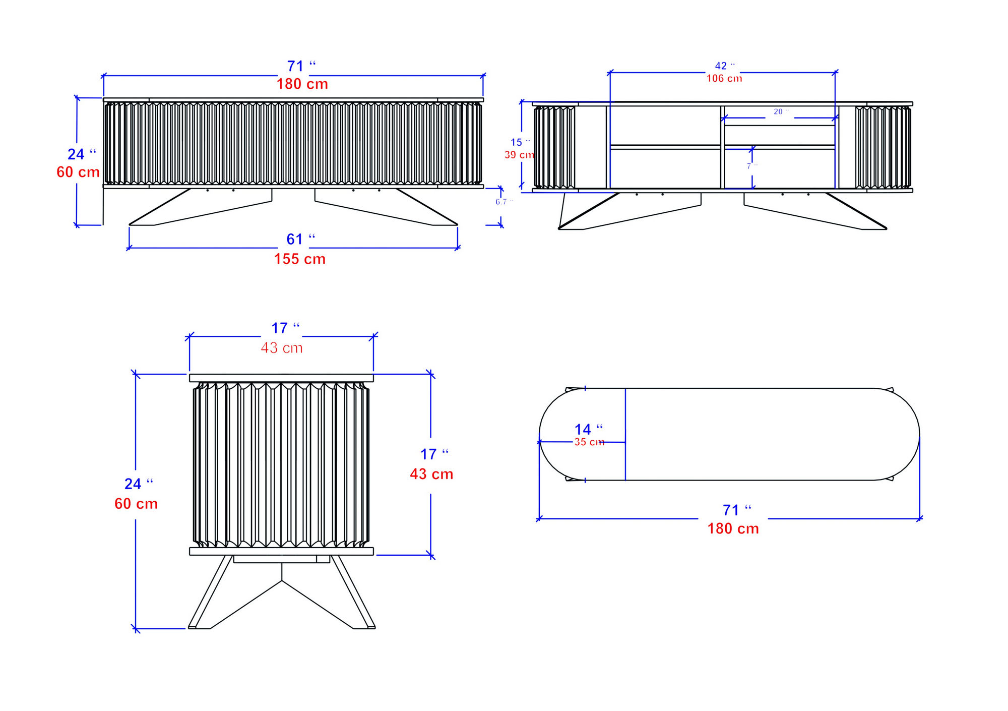 Ширина: 180 cm Длабочина: 43 cm Висина: 60 cm