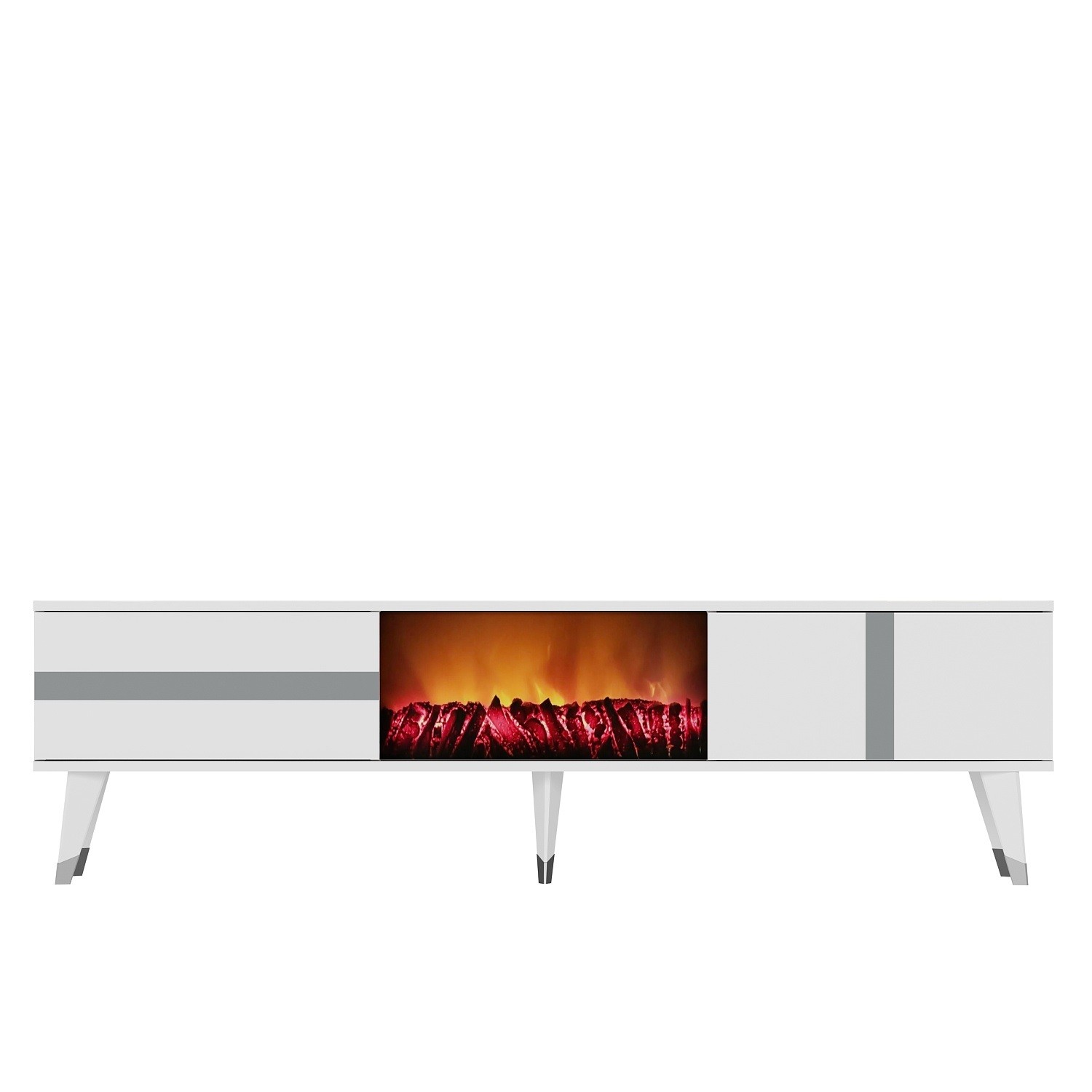 Vania Fireplace – White, Silver – ТВ комода