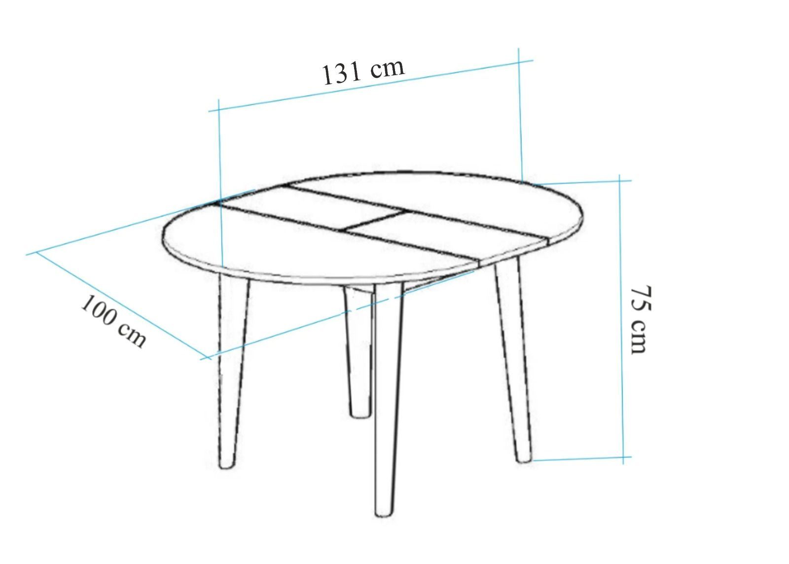 Отворена маса: Ширина: 131 cm Висина: 75 cm Длабочина: 100 cm
