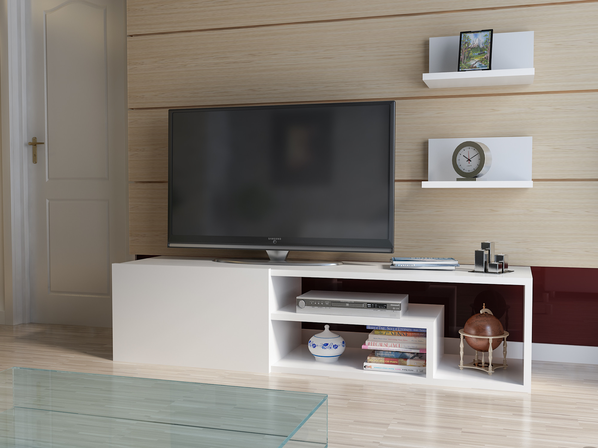 Kutay - White, Teak – ТВ комода